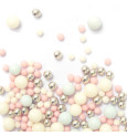 Sweetened decors - Ingredients: sugar (54%), dextrose, rice flour, glucose syrup, invert sugar syrup, thickener: gum arabic, flavouring, acidifying agent: citric acid, glazing agents: shellac, carnauba wax; vegetable coconut oil, colouring: E173, salt, gelatine (bovine), ingredients with colouring properties (safflower, spirulina, apple, radish, blackcurrant). May contain traces of GLUTEN, EGG, SOYA, MILK, NUTS, FISH.