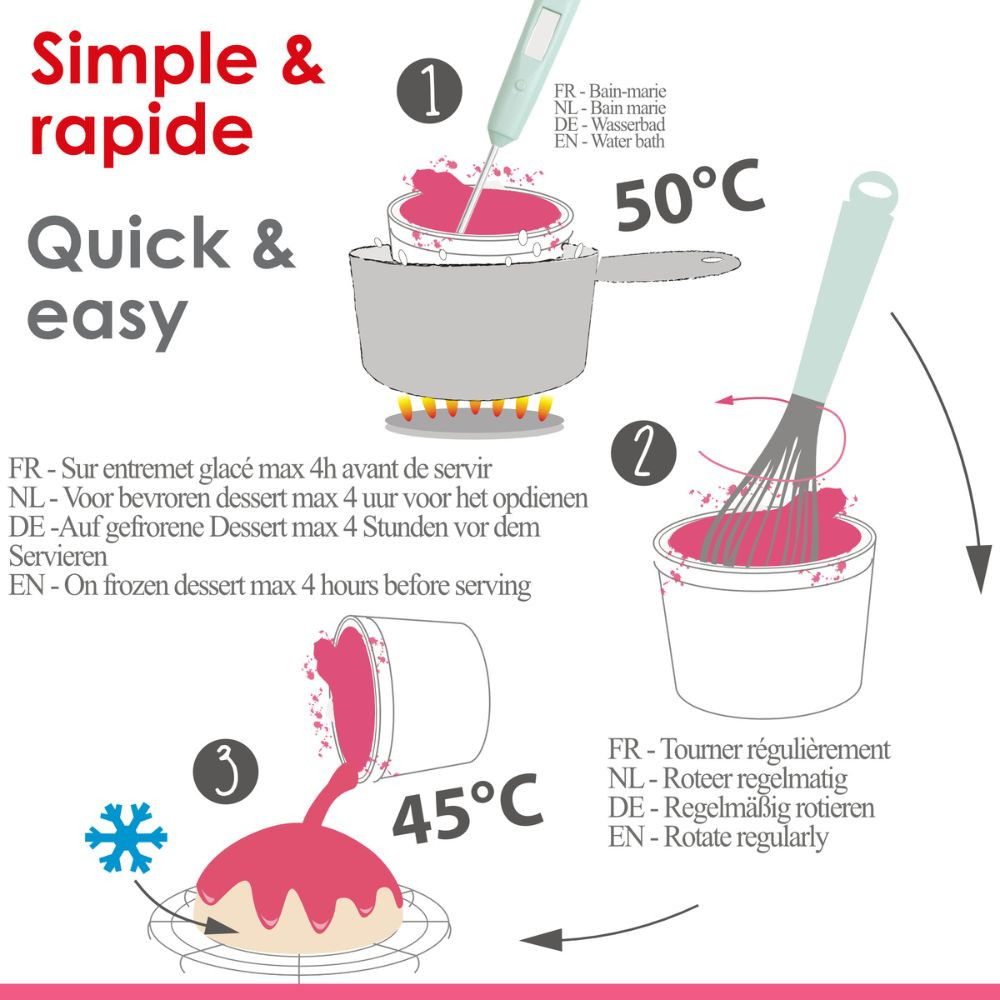 Easy to use because it's ready-to-use, simply heat and pour directly onto your Yule log or frozen entremets for the magic to happen!