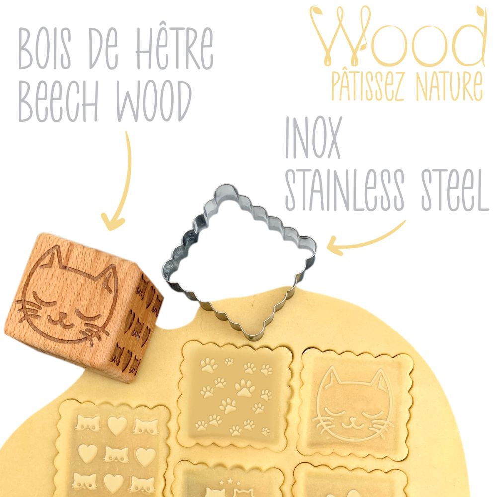 Emboss your Cat cookie dough using these square wood stamps and their 5 sides engraved with jolly Cat designs.