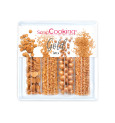 Sweetened decors - Ingredients: sugar, dextrose, vegetable oils (coconut, sunflower), glucose syrup, potato starch, WHEAT starch, rice flour, colourings: E101, E172; glazing agents: shellac, beeswax. MAY CONTAIN TRACES OF EGG, SOYA, MILK, NUTS, FISH.