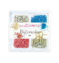 Colourful decorations: gold beads and sticks, red confetti, blue stars. Sprinkle them over your pastries or use them as table decorations to create a colourful atmosphere. These edible decorations contain no palm oil or azo dyes.