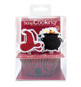This kit contains 24 presentation boxes made of paper and decorated with different wizard patterns and 24 cake toppers (12 cauldrons + 12 wizard hats) to stick on top of your cupcakes.