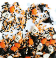 This bag contains a variety of 3D shapes, including pumpkins, witches' hats and ghosts, accompanied by orange, white and black sprinkles.