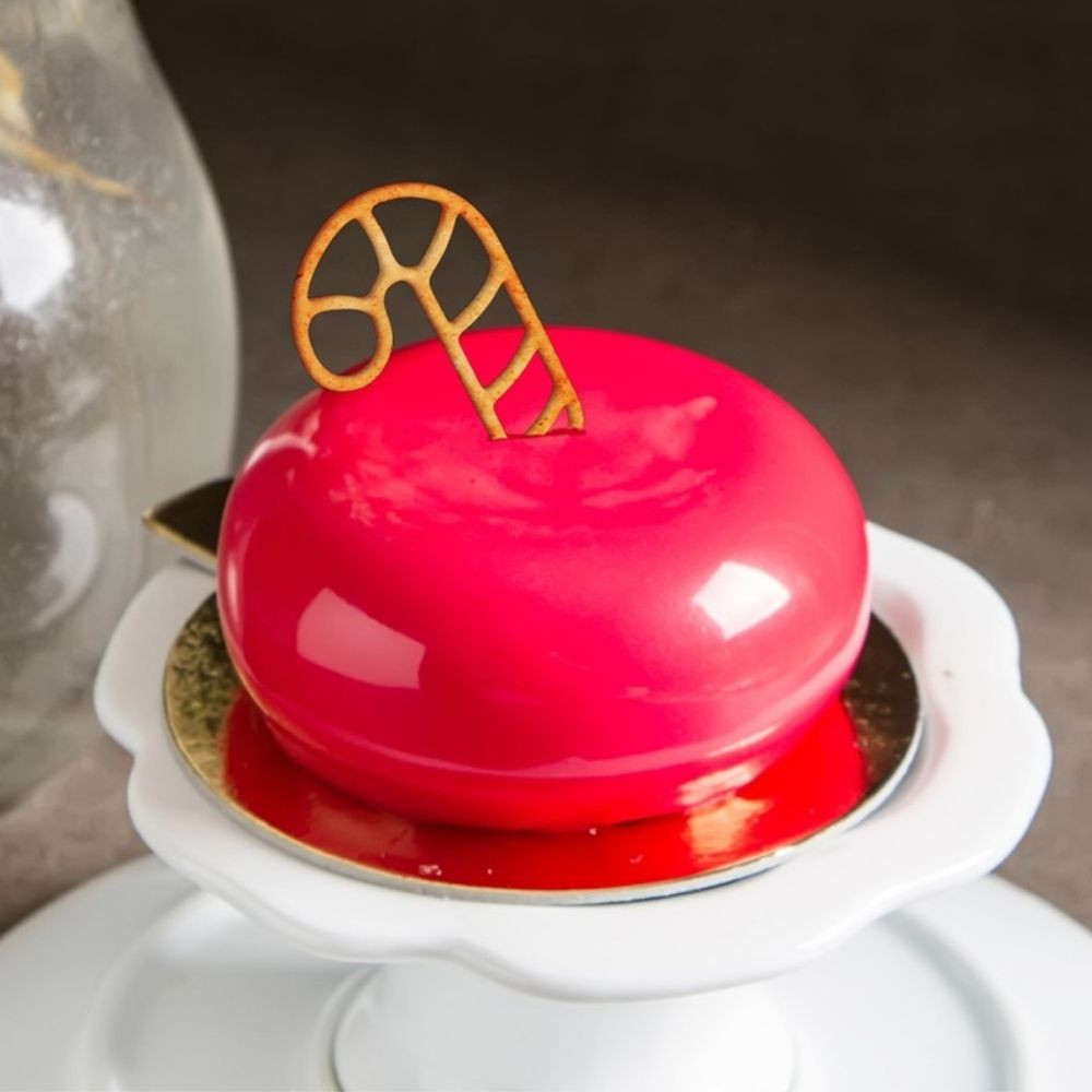 Craft ten perfect crisp “candy cane” tuiles in one step with this flexible, non-stick platinum silicone mat—ideal for entremets, logs or chocolate pieces.