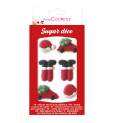 6 Father Christmas sweet scenery Ingredients: sugar, glucose syrup, gelatin, thickening agent E 414, solubilised MILK protein, humectant E 422, safflower concentrate, acidifier E330, emulsifier E 322, colourings: E 120, E 132, E 141, E 153, E 160a.