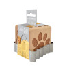 Pâtissez nature avec un magnifique cube en bois de hêtre. Il comporte 5 faces tampon gravées avec de nombreuses illustrations : 2 silhouettes de chats (une blanche et une noire) côte à côte, une grosse empreinte de chat, une tête de chat, plusieurs petites empreintes de chat et des ombres en forme de chat et cœur.