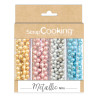 DES PERLES AUX TONS OR, ARGENT, ROSE ET BLEU - Mix de perles aux ravissantes teintes : doré, argent, rose et bleu. À parsemer sans modération sur vos pâtisseries ou en décor de table pour une ambiance féerique. Ces décors alimentaires sont comestibles, sans huile de palme et sans colorant azoïque.