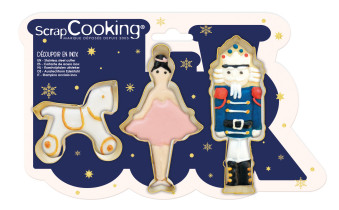 Pour réaliser ces biscuits Casse-Noisette, vous pouvez retrouver nos 3 emporte-pièces : Casse-Noisette, danseuse et cheval.