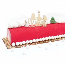 Pour réaliser cette recette, nous avons utilisé les éléments du coffret bûche ondine contenant un moule bûche, un insert et un tapis structuré Ondine.