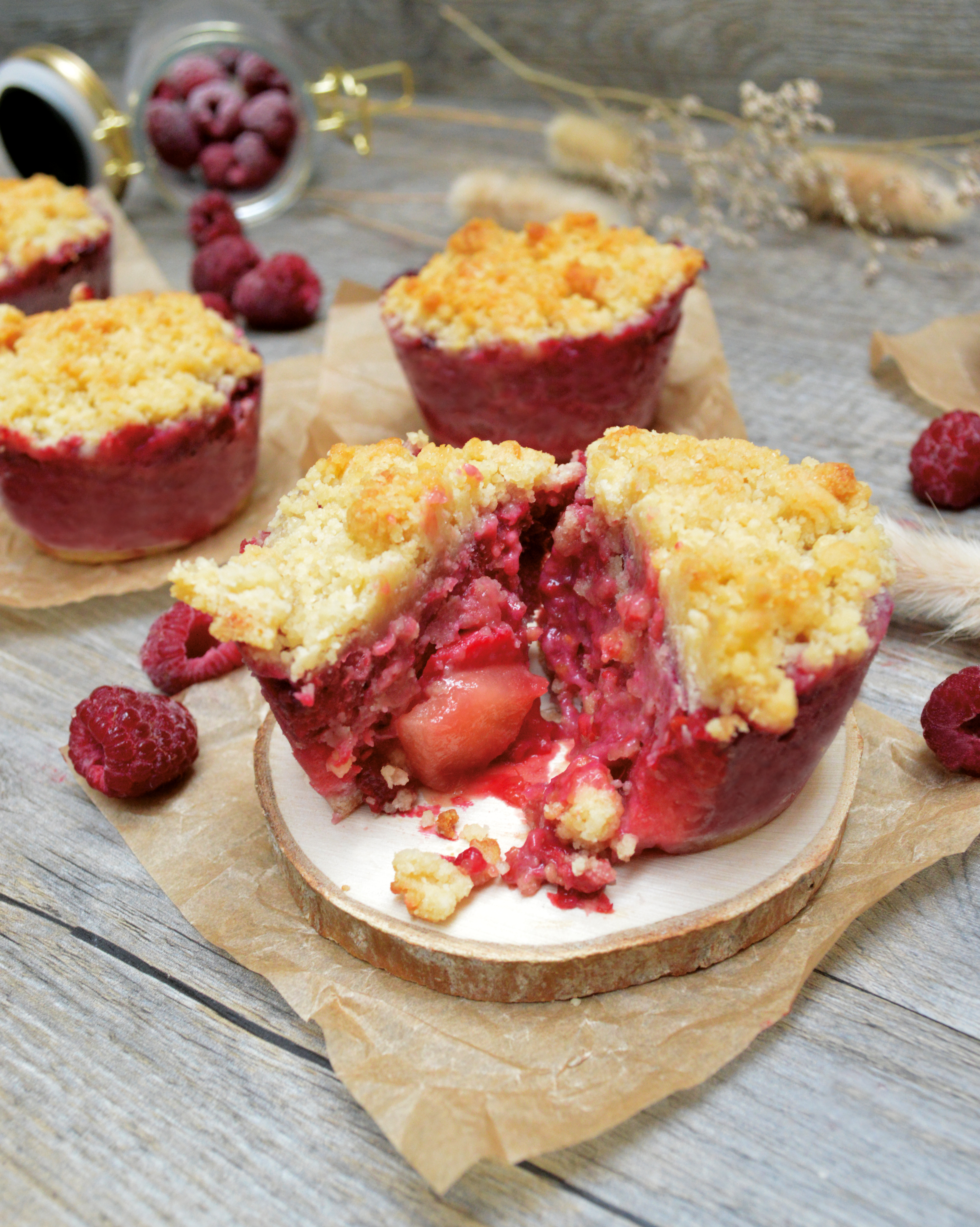 Étape 4 : Le montage. Sur un plan de travail fariné ou un tapis silicone, étalez la pâte sablée à l'aide d'un rouleau à pâtisserie. Après avoir beurré généreusement votre moule, déposez votre pâte sablée au fond de celui-ci & piquez-le à l'aide une fourchette pour éviter que la pâte ne gonfle à la cuisson. Versez vos pommes puis vos framboises. Pour finir, venez déposer le crumble sur le dessus et enfournez le tout pendant 40 minutes à 180°, puis 10 minutes à 150°.