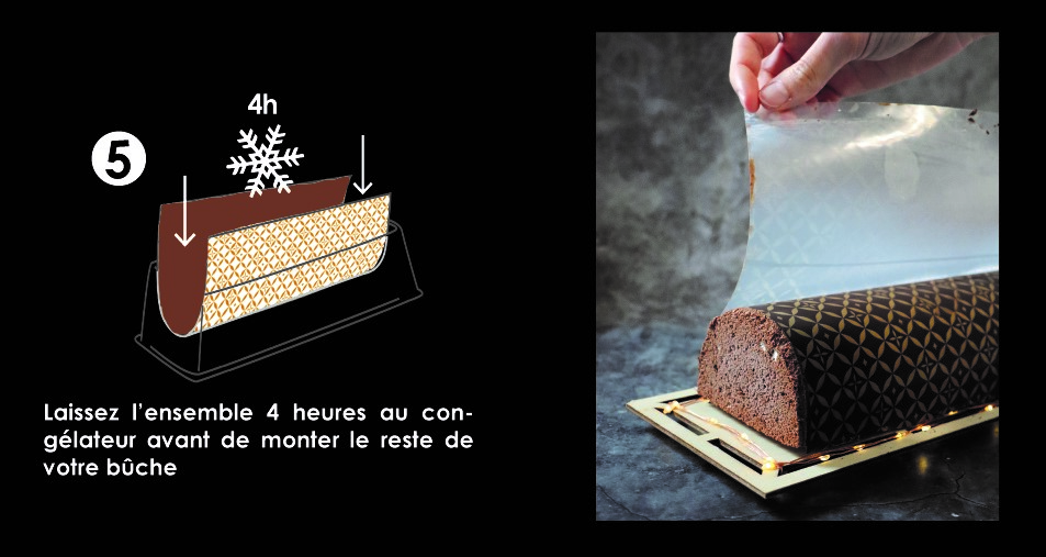 Le lendemain démoulez la bûche et laissez-là décongeler au réfrigérateur +/- 4h avant la dégustation.