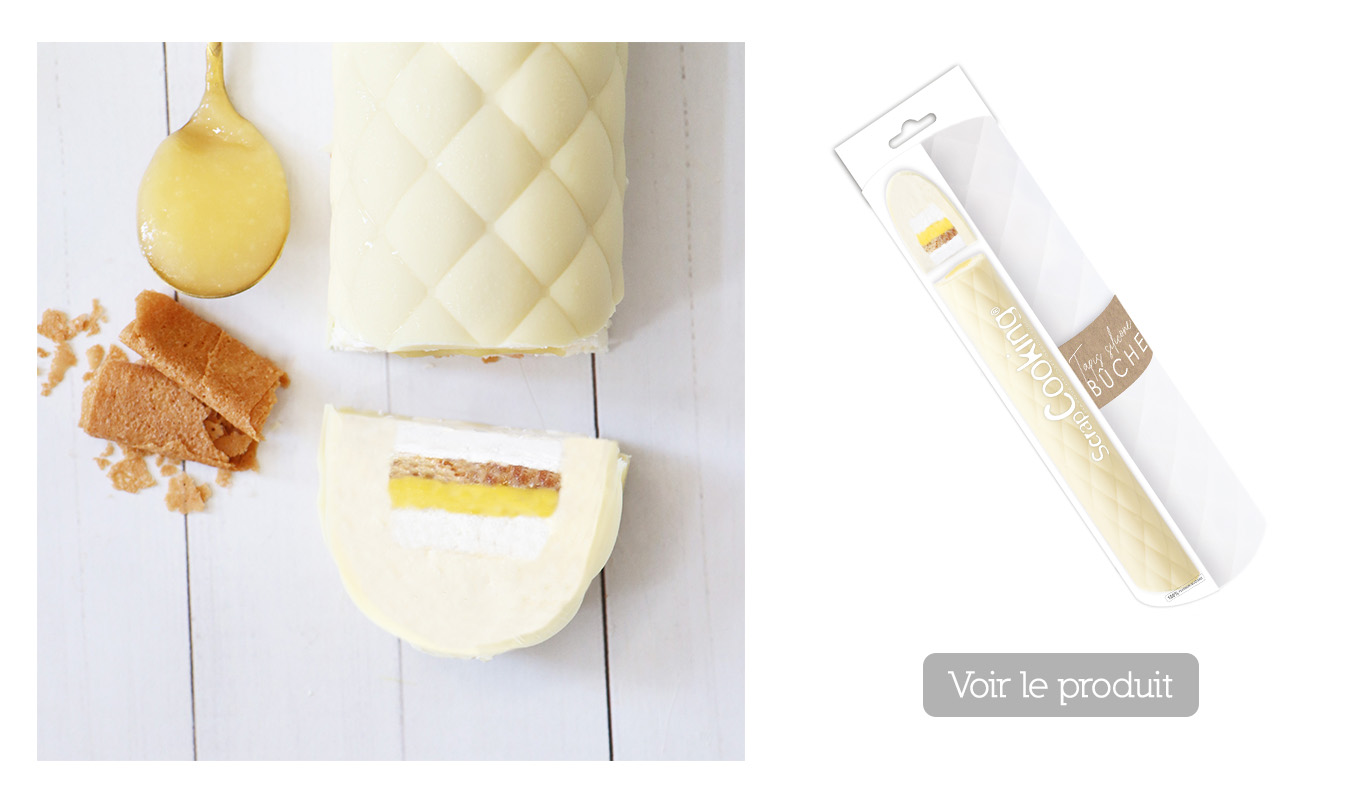 Recette réalisée grâce à notre moule bûche inox + notre tapis en silicone matelassé. Pour environ 8/10 parts moyennes.