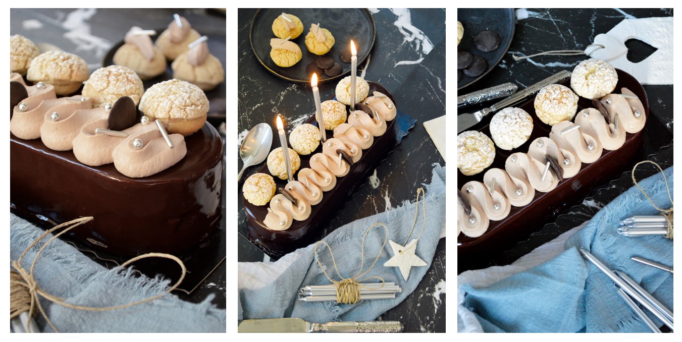 Le célèbre gâteau Saint-Honoré revisité en bûche de Noël, une super idée pour un dessert de fête qui régalera vos papilles !
