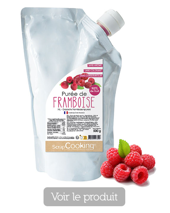 Étape 4 : Préparez le miroir à la framboise : réhydratez la gélatine en poudre dans 24 ml d’eau pendant 10 min. Versez les 30 ml d’eau dans une casserole, ajoutez le sucre puis la poudre de gélatine réhydratée. Chauffez doucement jusqu’à ce que le sucre soit fondu. Retirez du feu et ajoutez la purée de framboise. Mélangez bien à l’aide d’un fouet. Versez directement sur le cheesecake encore cerclé sans attendre qu’il ait refroidi. Réservez au frais au minimum 3h.