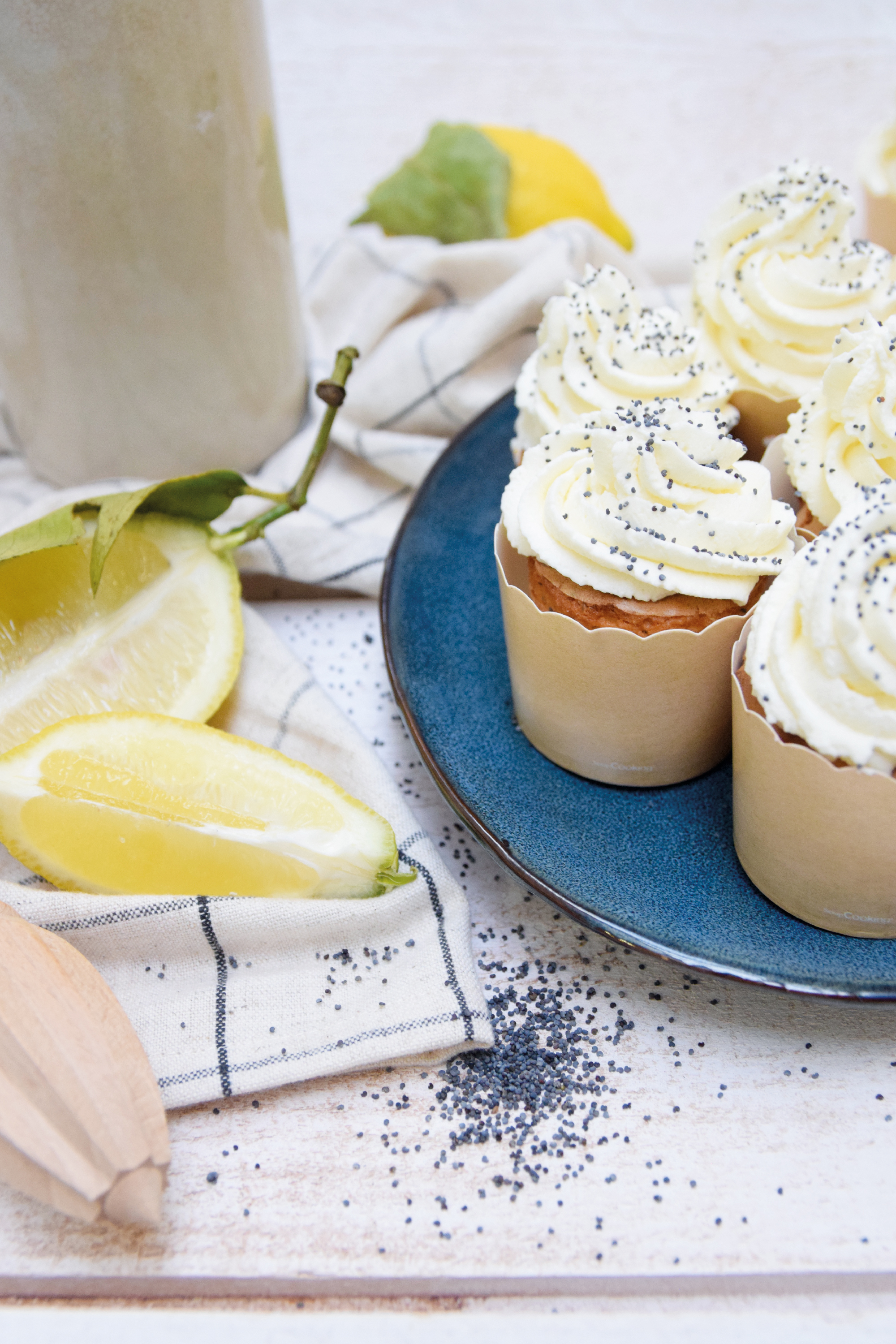 Étape 6 : Préparez la chantilly mascarpone. N’hésitez pas à placer votre cuve de robot et votre fouet au congélateur avant préparation pour obtenir une chantilly bien ferme. Mélangez la crème liquide (bien froide), le mascarpone, le sucre glace et la poudre d’arôme de citron à l’aide de votre robot en augmentant progressivement la vitesse. Une fois bien montée (attention à bien surveiller le montage afin que la chantilly ne se transforme pas en beurre), placez là dans une poche à douille munie d’une douille et laissez là au frais avant utilisation. Il ne restera plus qu'à dresse la chantilly sur vos cupcakes avant dégustation !