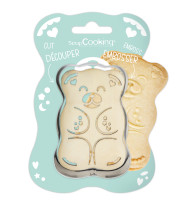 Une fois la pâte bien froide, farinez les découpoirs et les embosseurs. Prenez l'embosseur et venez l'appliquer sur la pâte en appuyant délicatement pour imprimer le motif. Puis, à l'aide du découpoir, découpez le contour. Une fois tous les motifs/formes réalisés, nous vous conseillons de placer votre plaque 30 minutes au frais (ou 5 min au congélateur) avant cuisson afin que la pâte ne se déforme pas. Gardez les chutes de pâte pour réaliser d'autres biscuits.