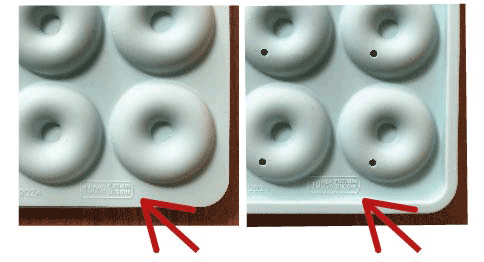 Placez la deuxième partie du moule (celui avec les petits trous) sur le premier moule en veillant à bien superposer les deux parties (il suffit de placer les symboles des 2 parties l’une sur l’autre).