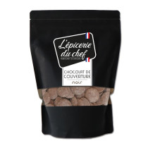 Sachet refermable de palets de chocolat de couverture NOIR L'épicerie du Chef. Idéal pour vos desserts, moulages en chocolat, fondues. Poids net : 500 g. Les palets ou pistoles de chocolat sont fort appréciés en pâtisserie car un fondent parfaitement (bien mieux que des carrés de chocolat en tablettes).