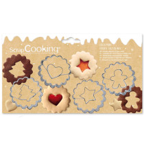 Utilisez vos emporte-pièces inox biscuits Linzer pour détailler tous les biscuits. Puis prenez la moitié de ceux-ci et détaillez des formes à l’intérieur pour obtenir des biscuits ajourés.